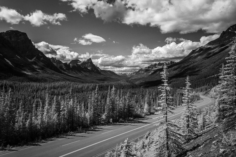 The Icefields Parkway is an incredibly scenic road in Canadian Rockies. It parallels the Continental Divide. Traversing the rugged landscape of the Bow, Saskatchewan and Athabasca river valleys while travelling through Banff National Park and Jasper National Park. It links Lake Louise with Jasper to the north.