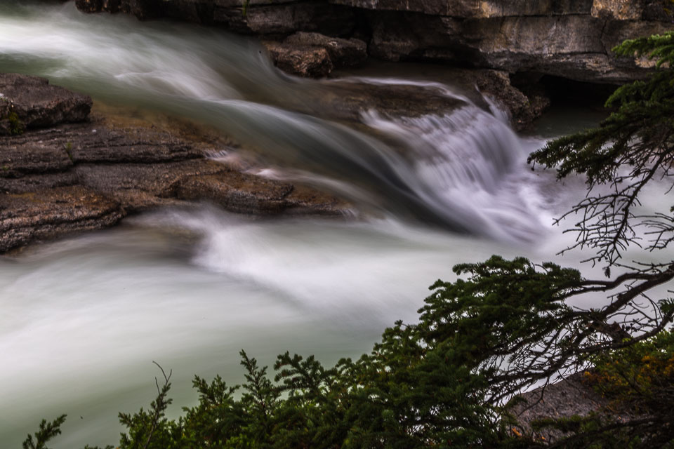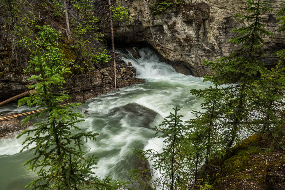 The Maligne River ('maligne' is french for 'malignant' due to the difficulty of crossing) has carved itself the deepest slot canyon in the Canadian Rockies.