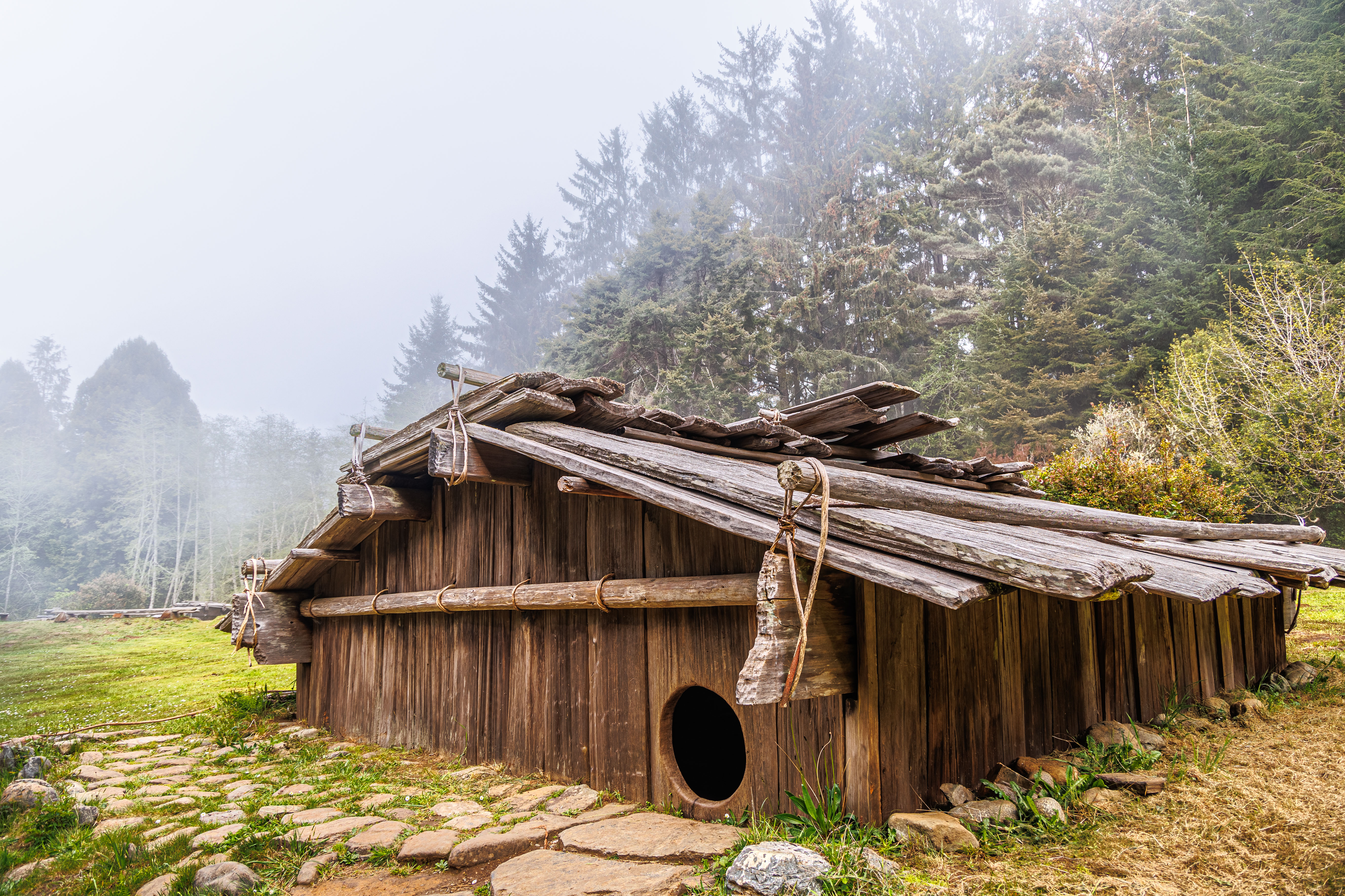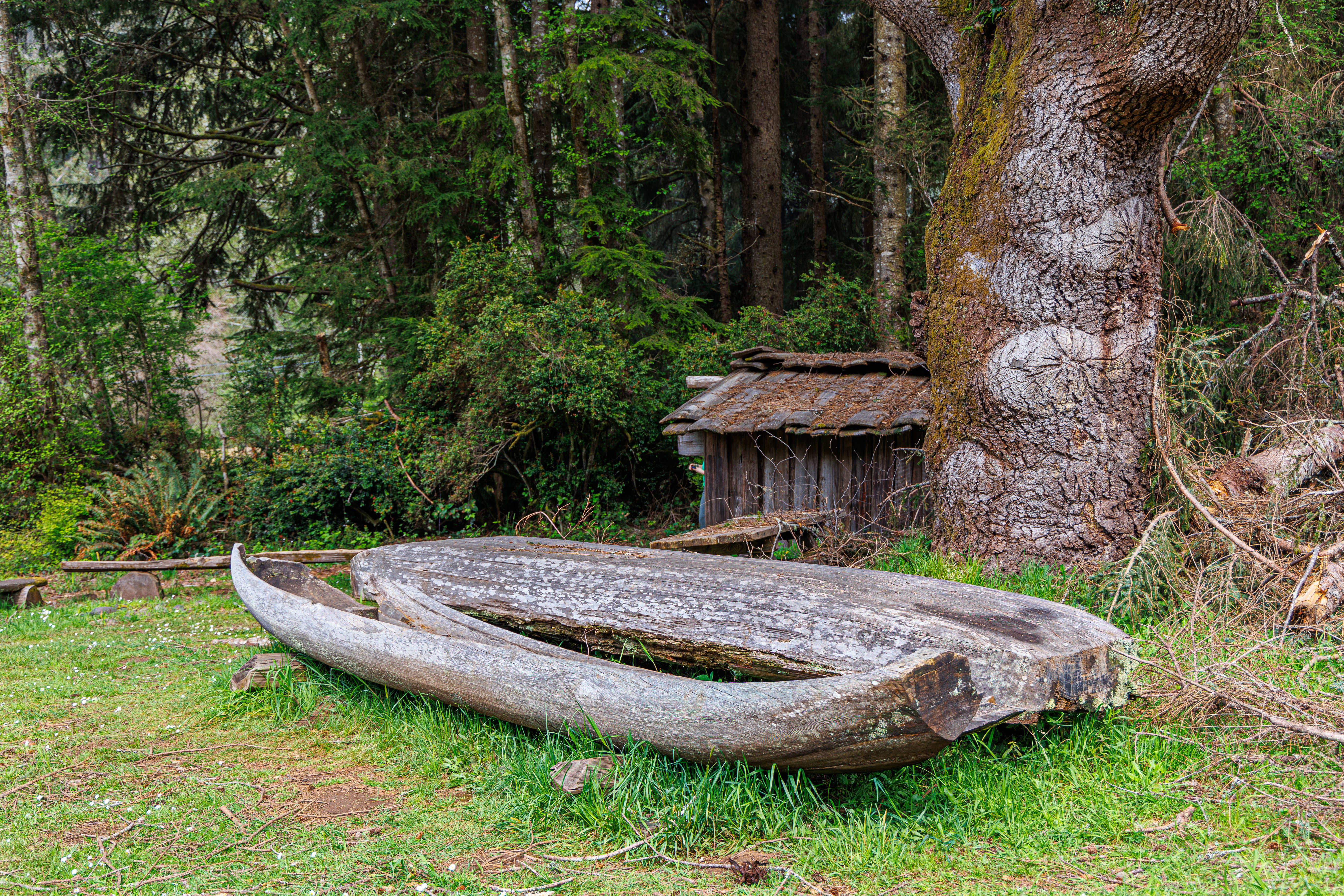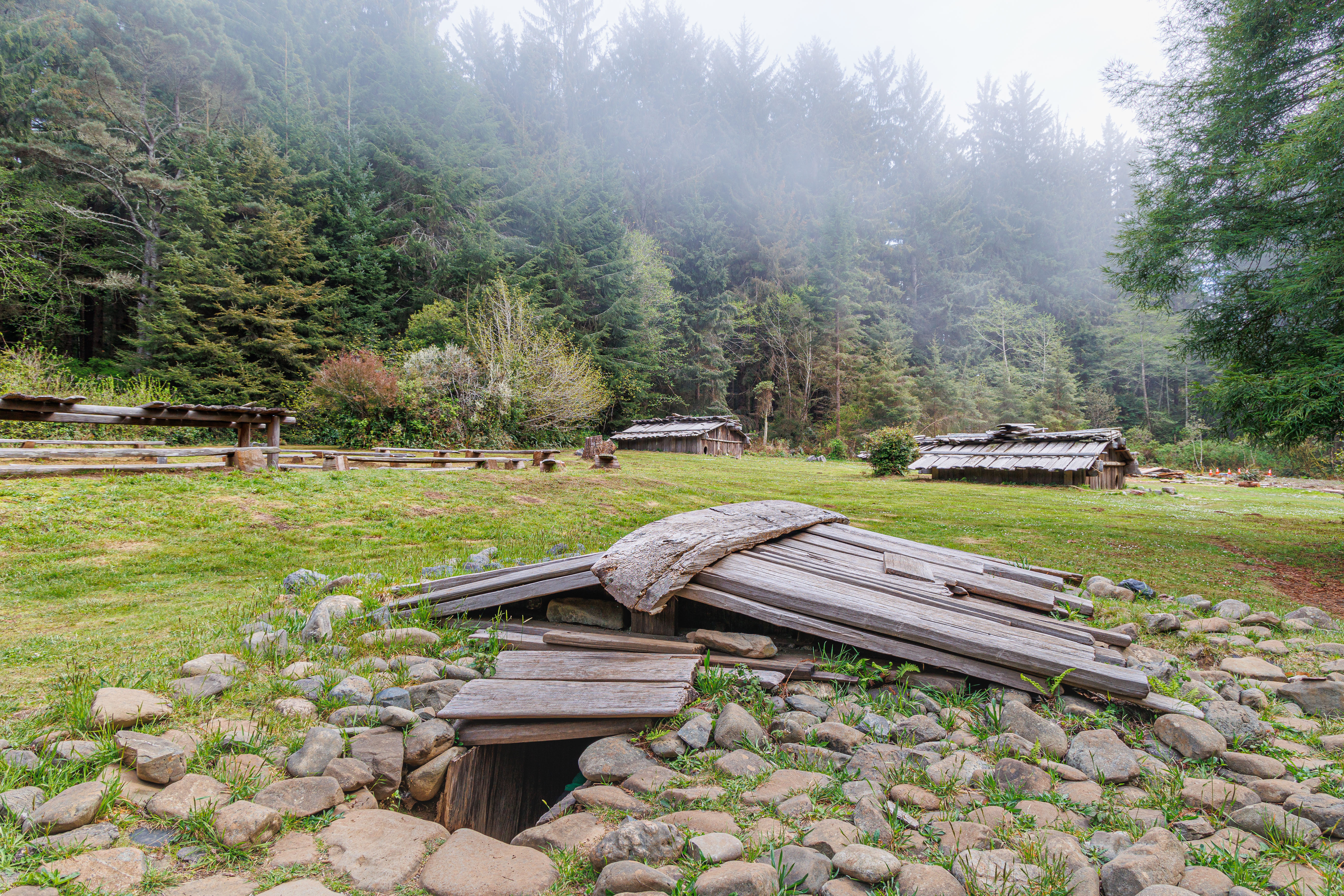 The park contains a a recreated Yurok Village. The Sumêg Village features traditional Yurok family houses, a sweathouse, changing houses, a redwood canoe, and a dance house. The village is used by local Yuroks for education of their youth and sharing their culture with park visitors. Yearly celebrations are held, and many school groups visit the village when studying California history.