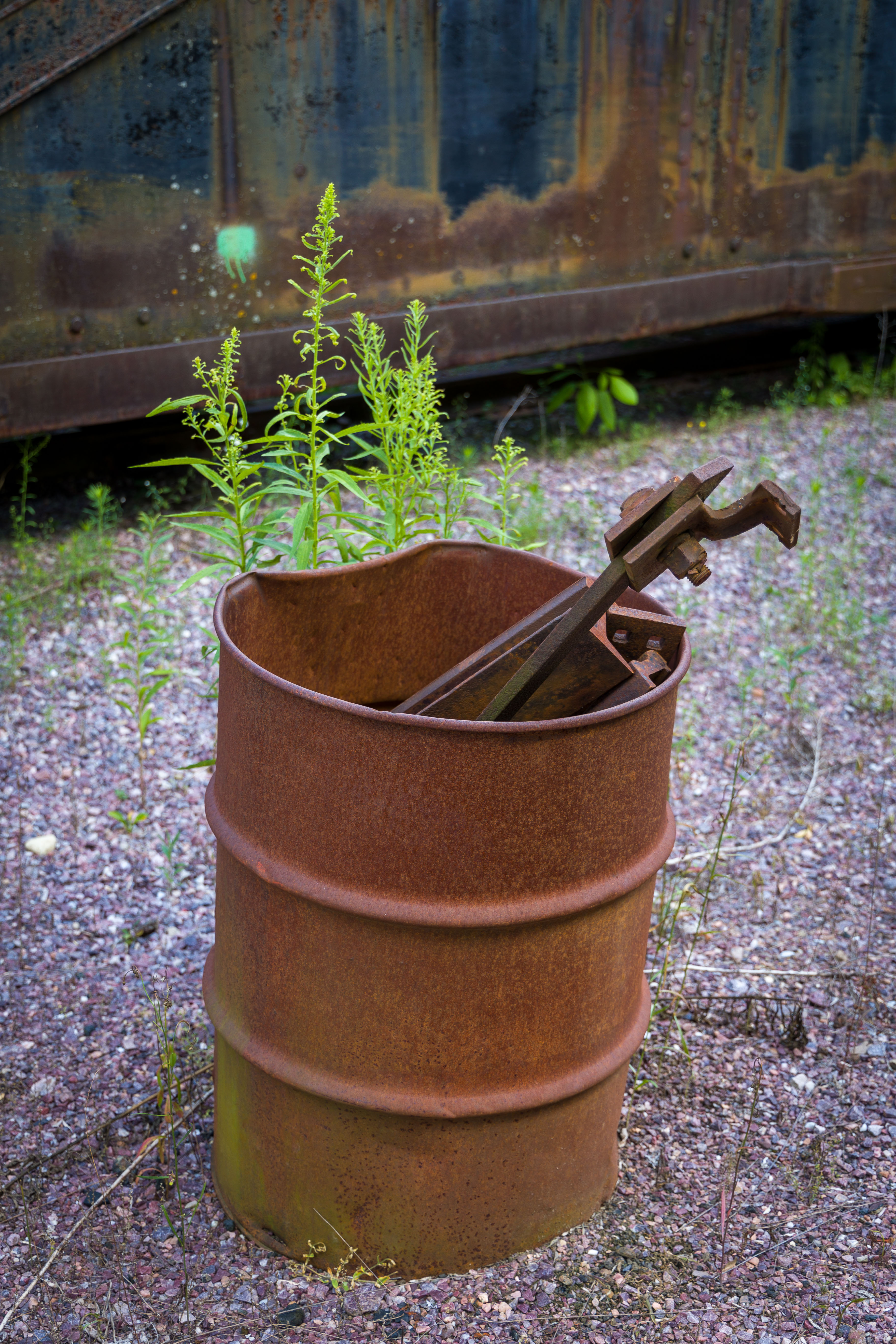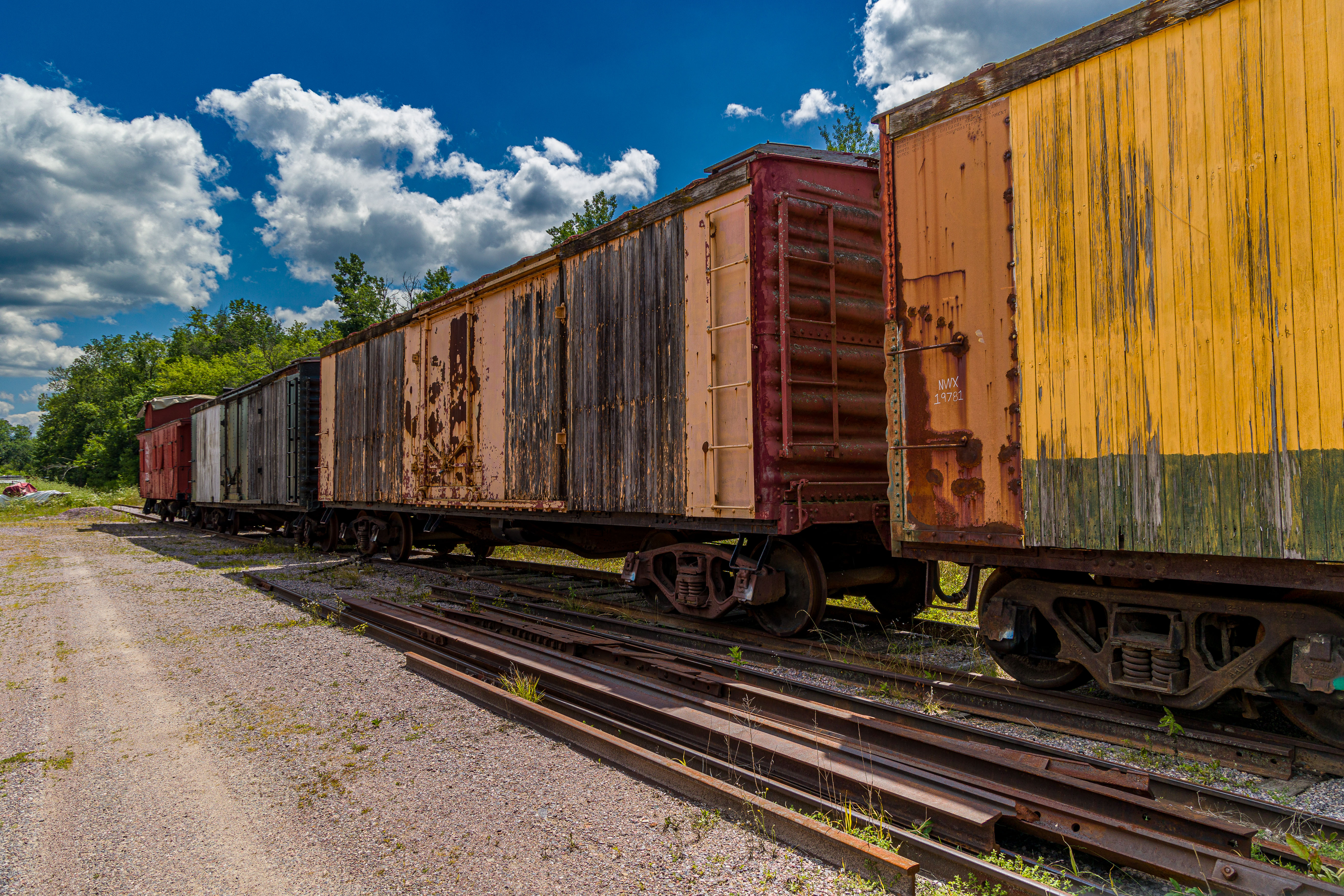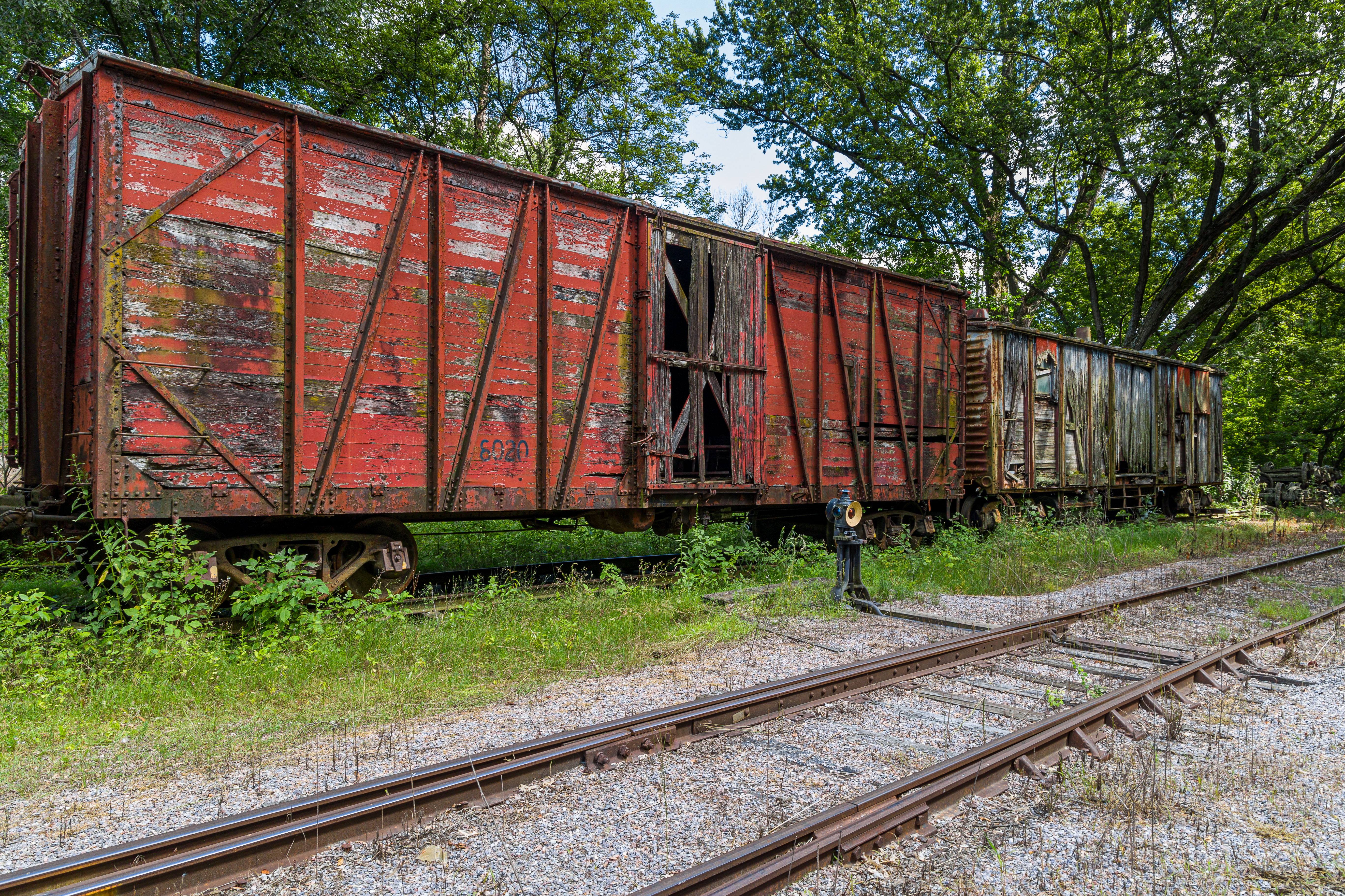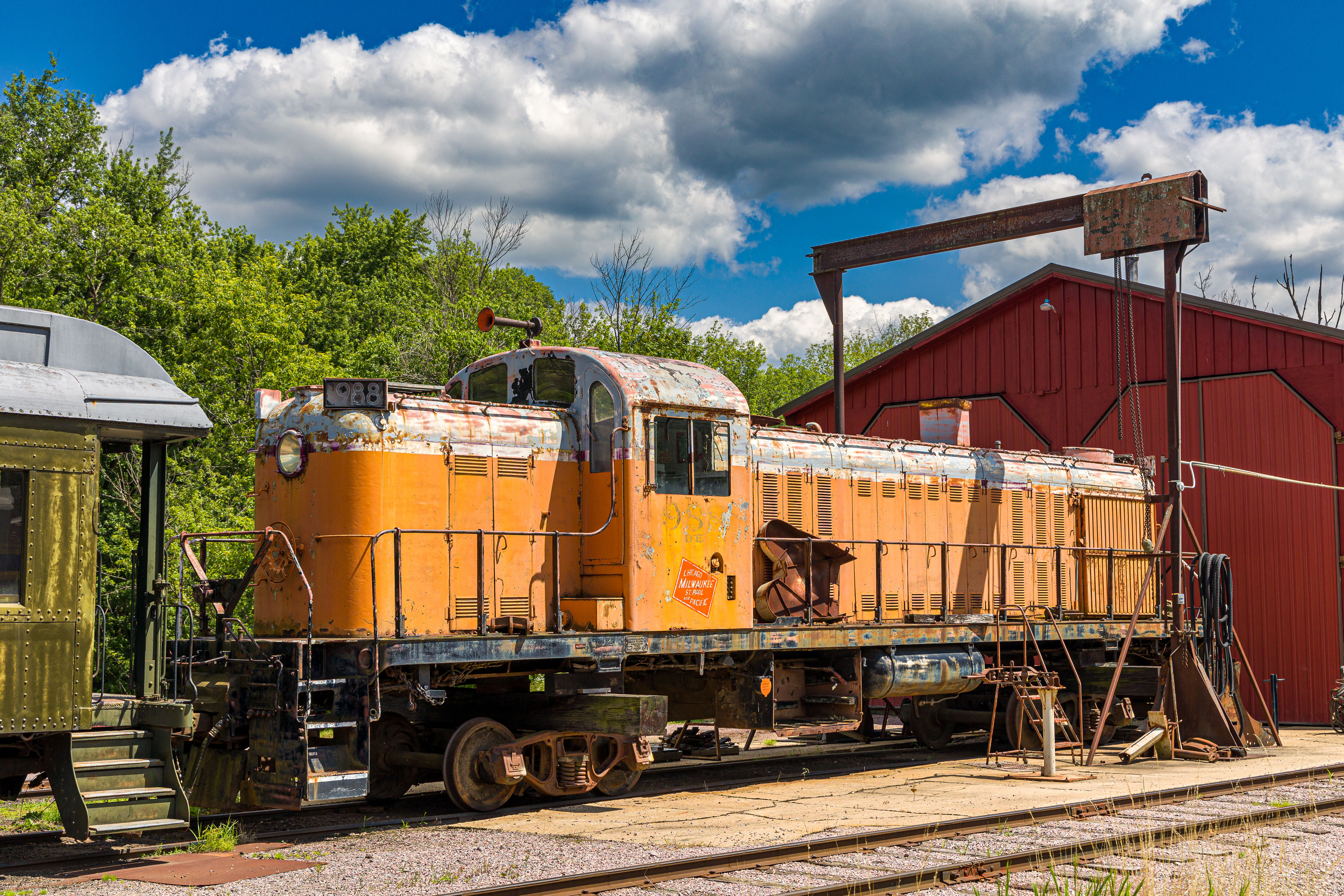 The Mid-Continent Railway Museum's collection emphasizes the preservation of railroad items operated in the upper Midwest from the period of 1880–1916, what the organization refers to as the "Golden Age of Railroading" The museum has 13 steam and 7 diesel locomotives and over 100 other pieces of rolling stock. The museum has the largest collection of wooden passenger cars in the United States as well as being home to five of only six surviving wooden boxcars built by the Mather Stock Car Company and the nation's last surviving fish car, Wisconsin Fish Commission "Badger Car #2" Many of these shots are from wandering around "the boneyard" of decommissioned engines and rolling stock in various states of disrepair and salvage.