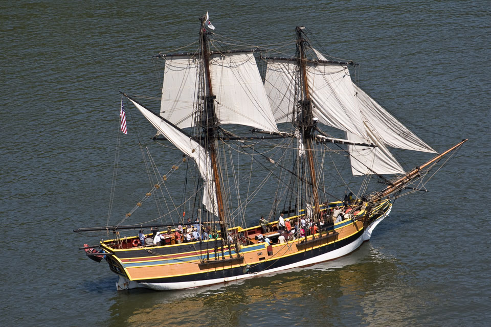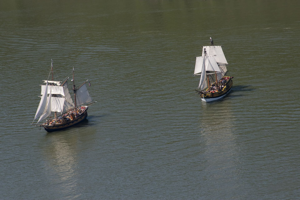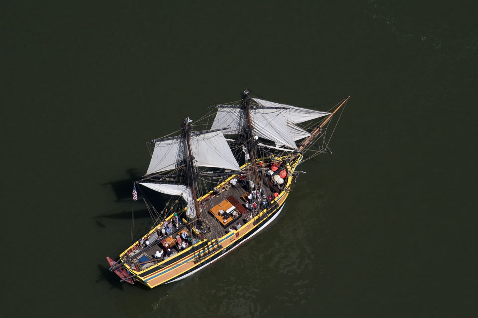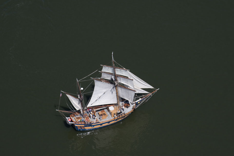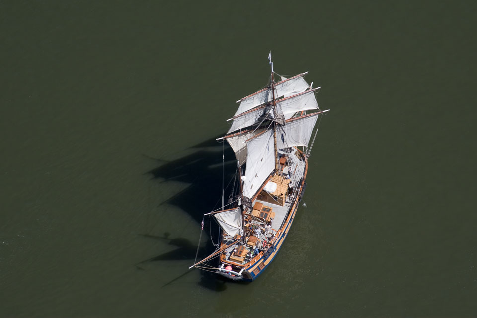 Images of the Lady Washington and Hawaiian Chieftain in Hood RIver, OR, including a visit to WAAAM and aerial photos